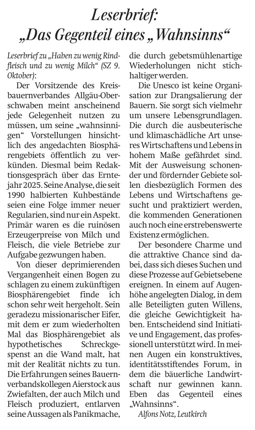 Leserbriefe 10/25 Siegfried Roth, Alfons Notz, Manfred Walser Artikel SchwäZ, Ulrich Walz
